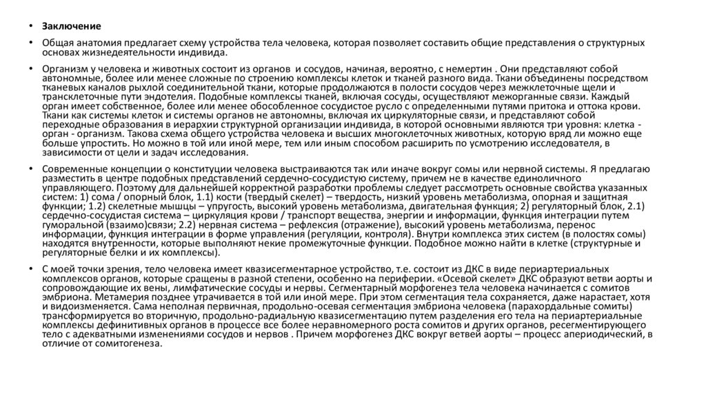 • Заключение• Общая анатомия предлагает схему устройства тела человека, которая позволяет составить общие представления о структурных