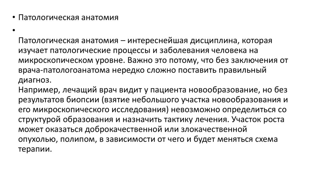 • Патологическая анатомияПатологическая анатомия – интереснейшая дисциплина, которая