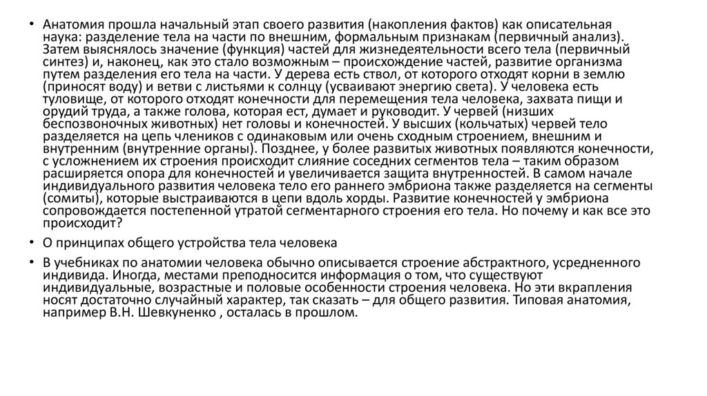 современная анатомия, называемая очень удачно «думающей анатомией», стремится осмыслить,