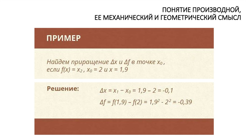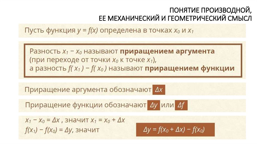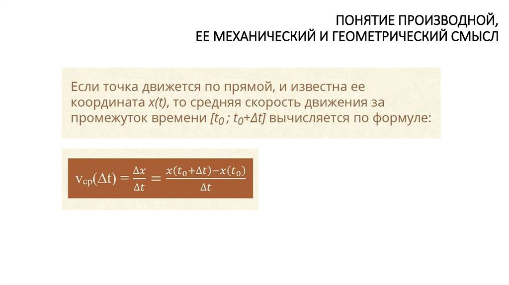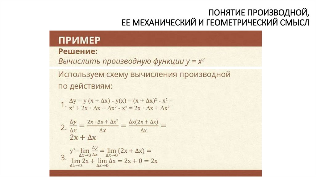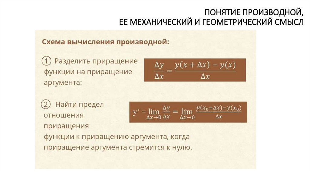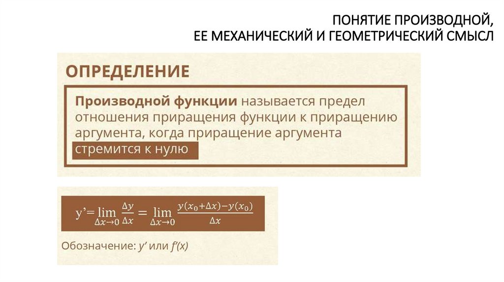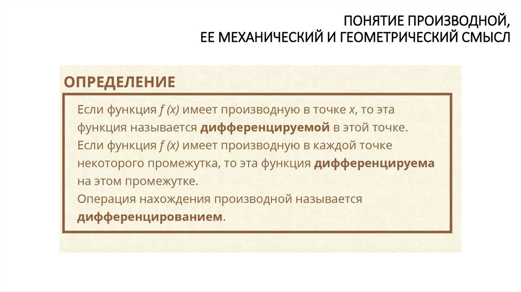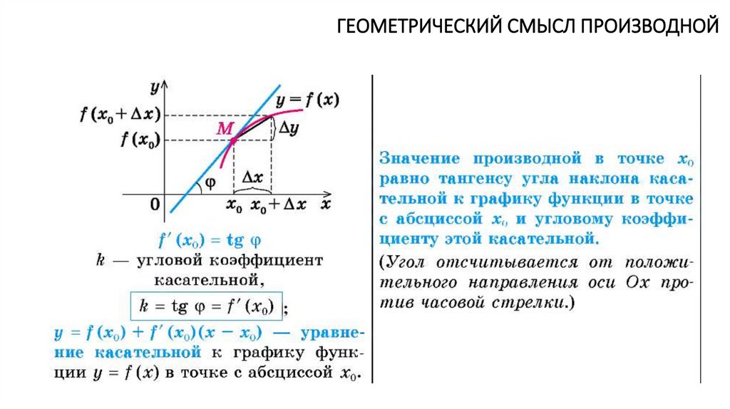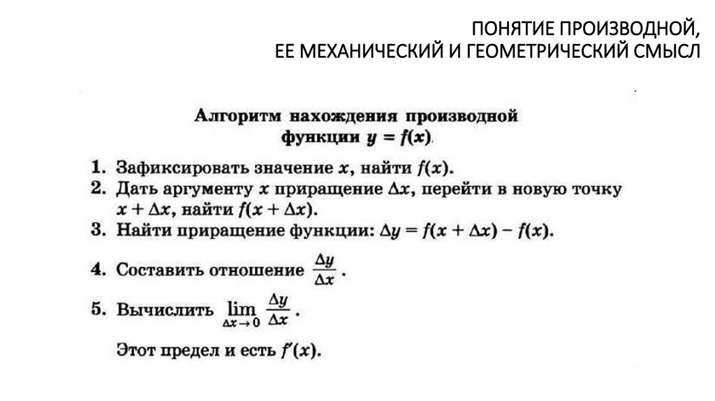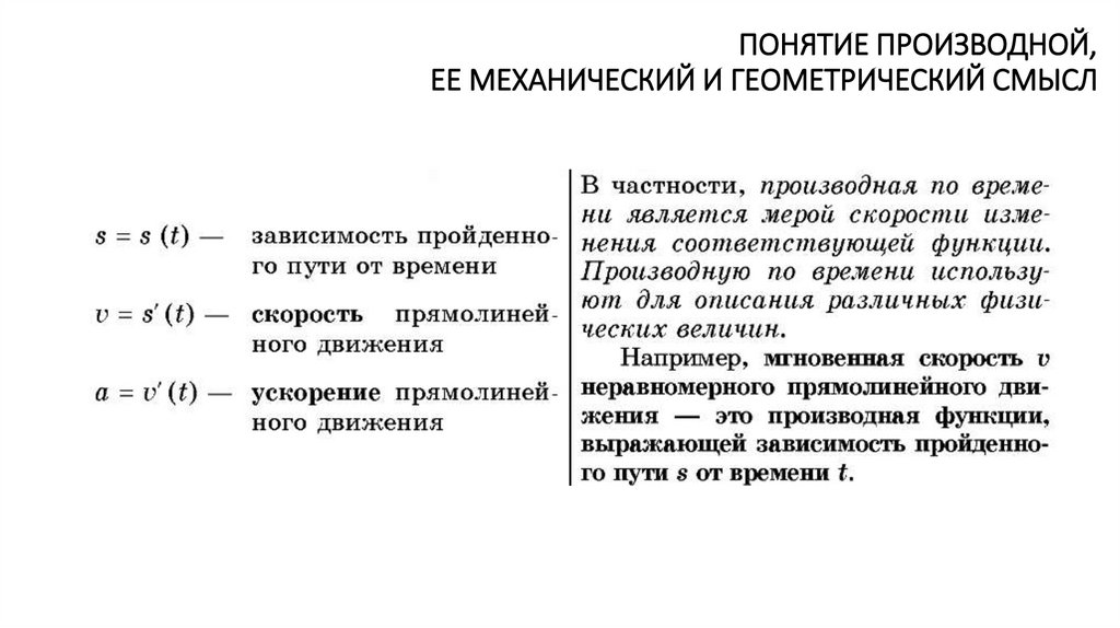 ПОНЯТИЕ ПРОИЗВОДНОЙ,ЕЕ МЕХАНИЧЕСКИЙ И ГЕОМЕТРИЧЕСКИЙ СМЫСЛ