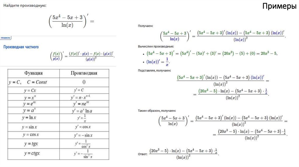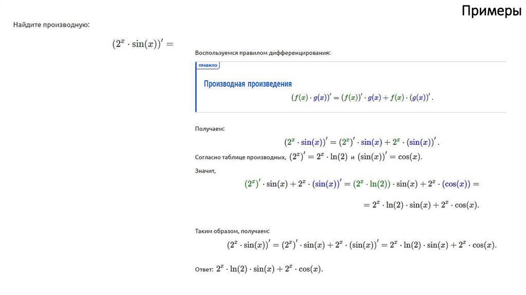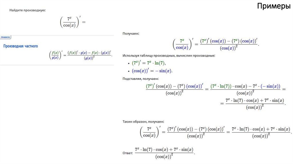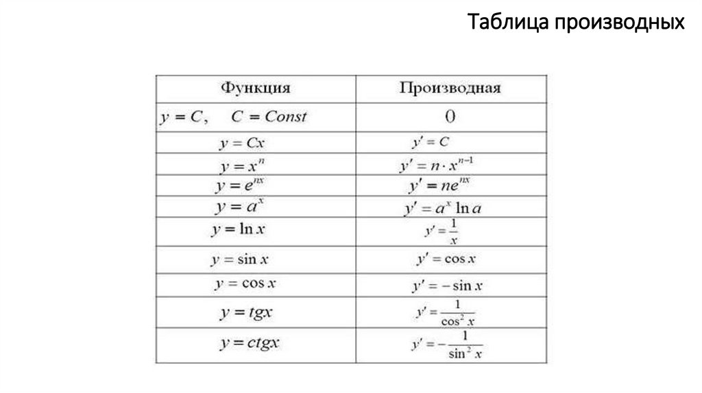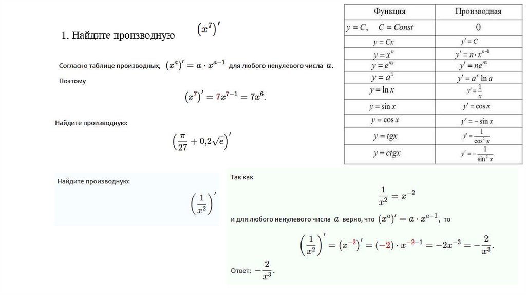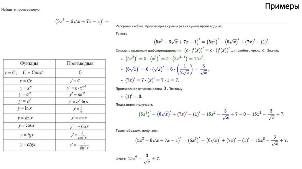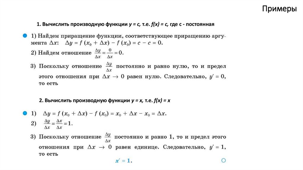 Примеры1. Вычислить производную функции у = с, т.е. f(х) = c, где с - постоянная