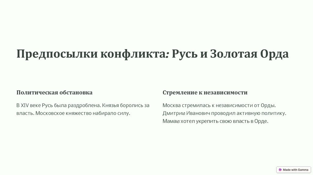 Предпосылки конфликта: Русь и Золотая ОрдаПолитическая обстановка