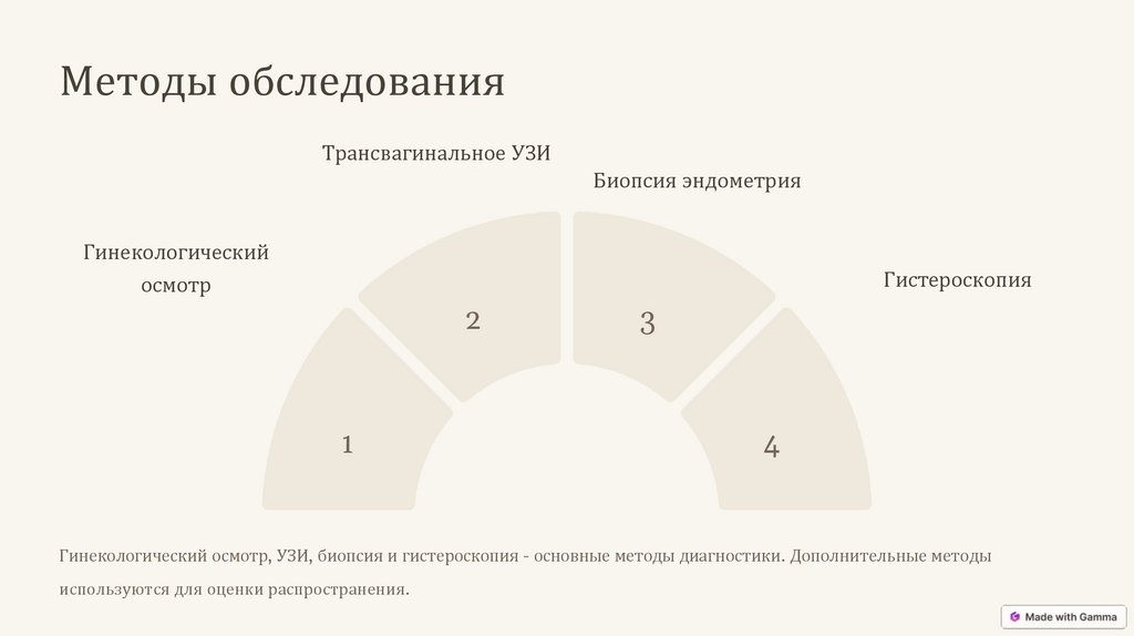 Гинекологический осмотр, УЗИ, биопсия и гистероскопия - основные методы диагностики. Дополнительные методы