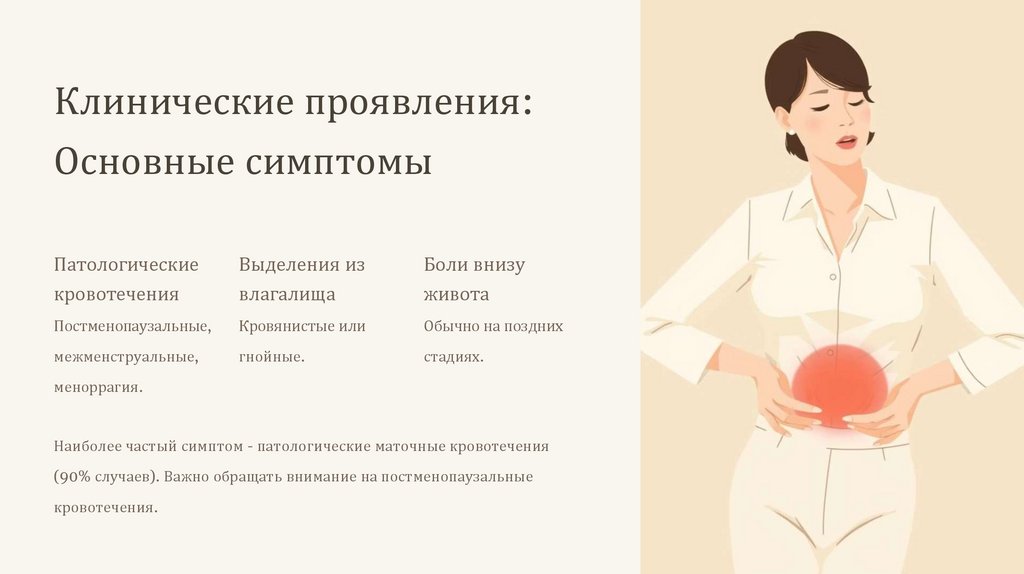 (90% случаев). Важно обращать внимание на постменопаузальные