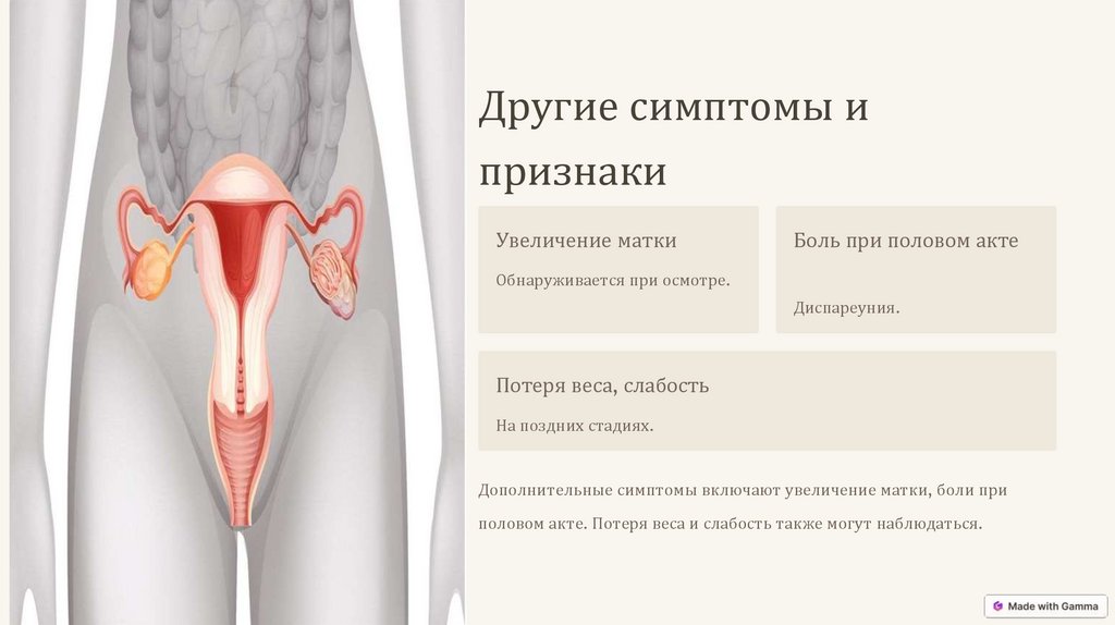 половом акте. Потеря веса и слабость также могут наблюдаться.