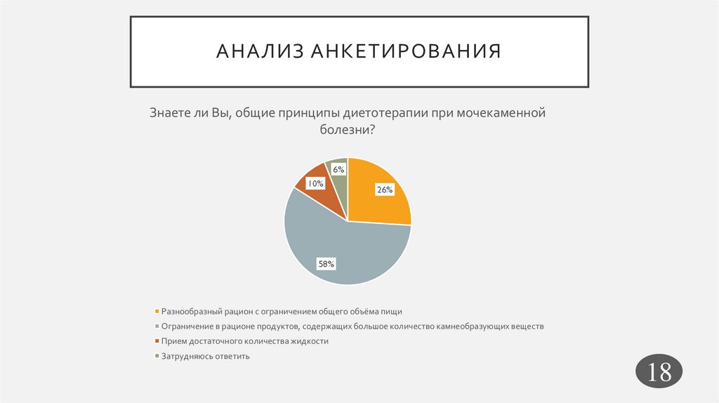 АНАЛИЗ АНКЕТИРОВАНИЯЗнаете ли Вы, общие принципы диетотерапии при мочекаменной
