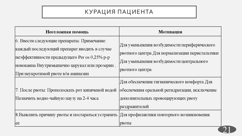 8.Выяснить причину рвоты и постараться устранить Для профилактики повторного возникновения