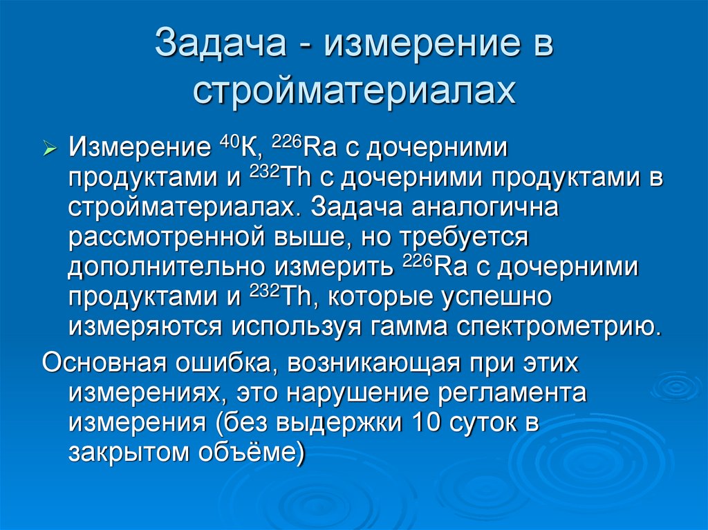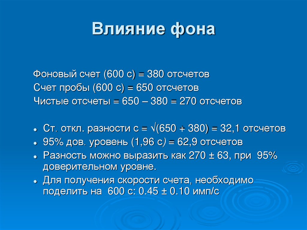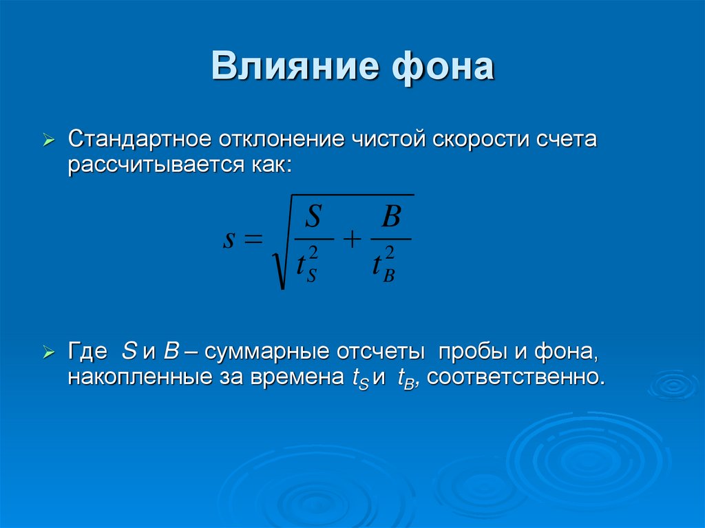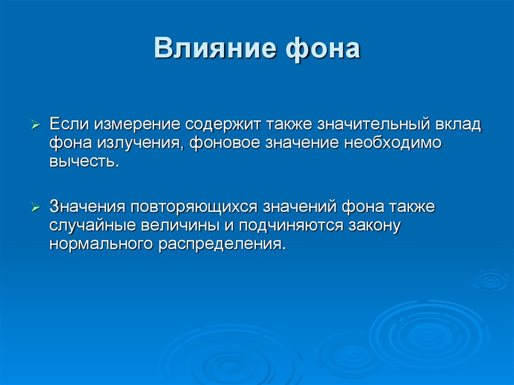 Если измерение содержит также значительный вкладфона излучения, фоновое значение необходимо