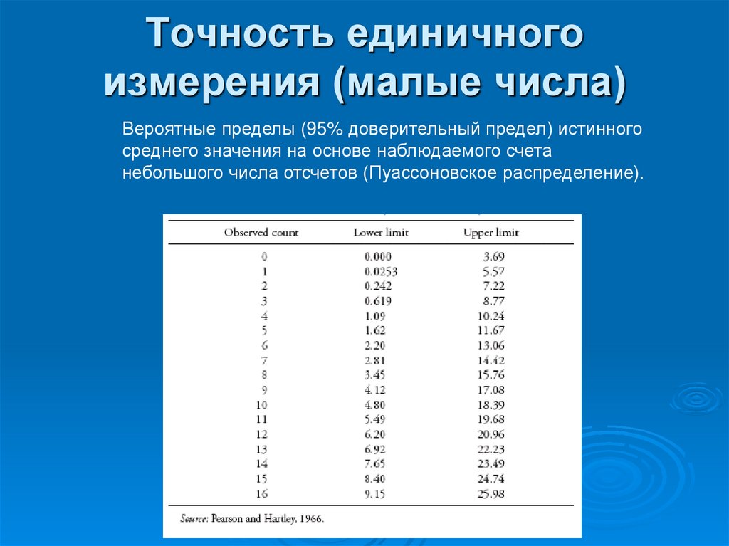 Вероятные пределы (95% доверительный предел) истинногосреднего значения на основе наблюдаемого счета