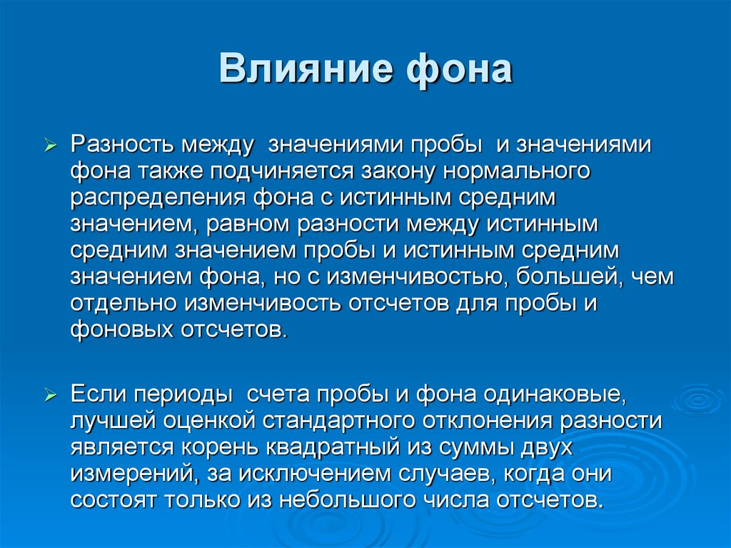 Разность между значениями пробы и значениямифона также подчиняется закону нормального