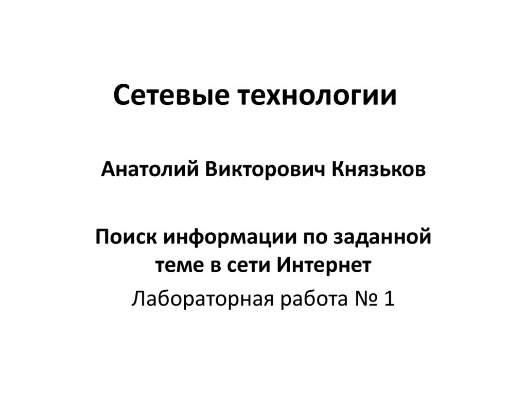 Поиск информации по заданной теме в сети Интернет Лабораторная работа № 1