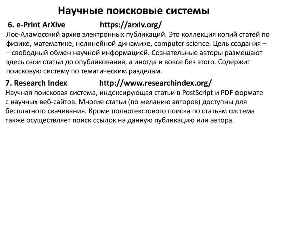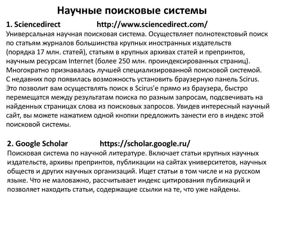 Универсальная научная поисковая система. Осуществляет полнотекстовый поиск
