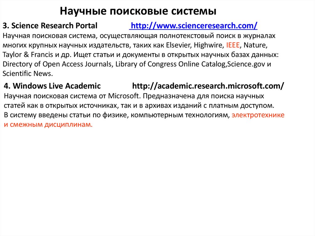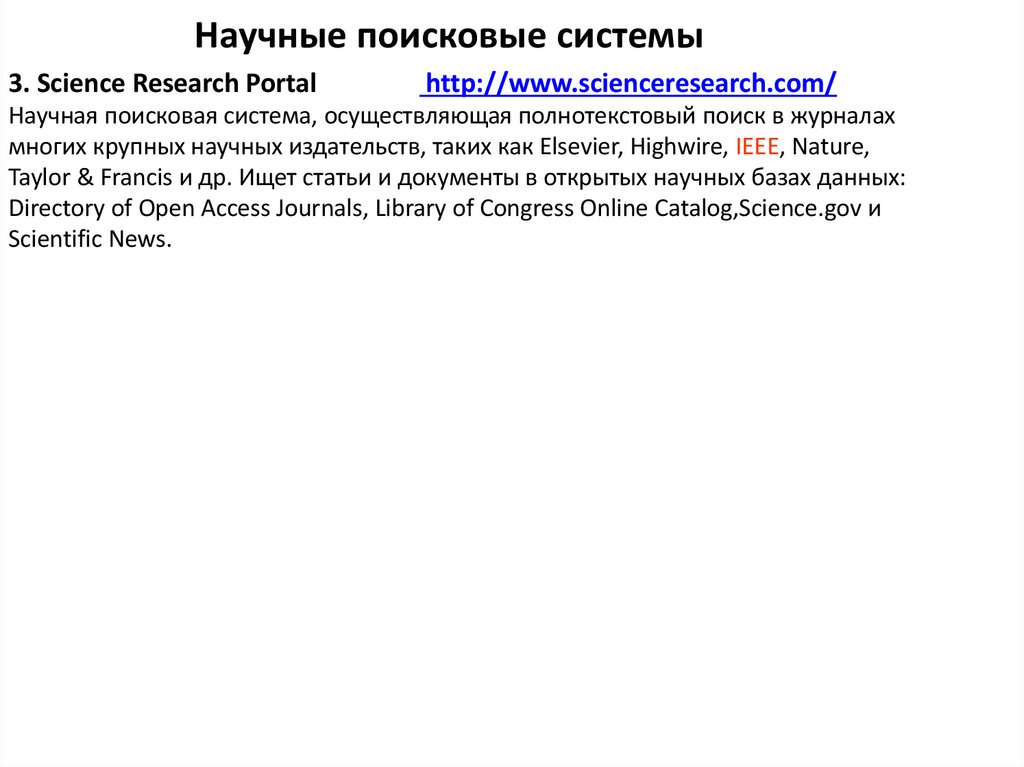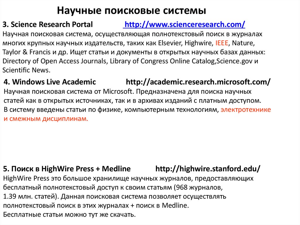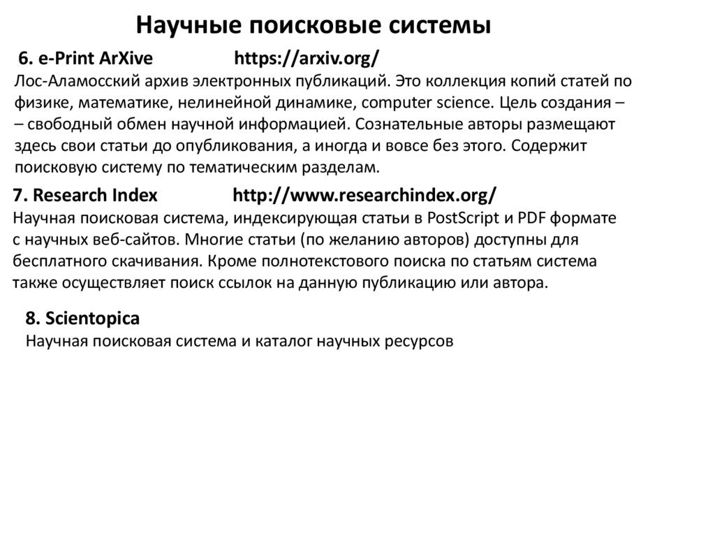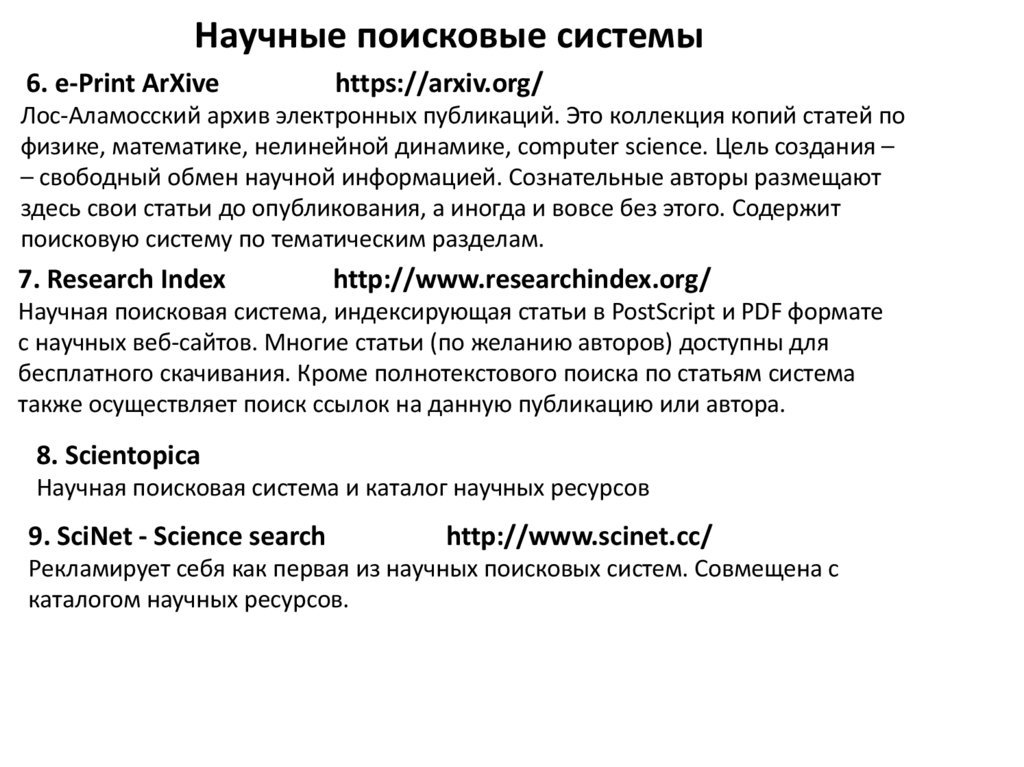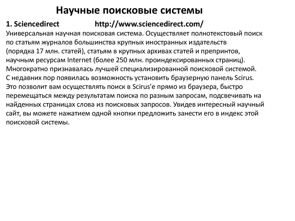 научным ресурсам Internet (более 250 млн. проиндексированных страниц).