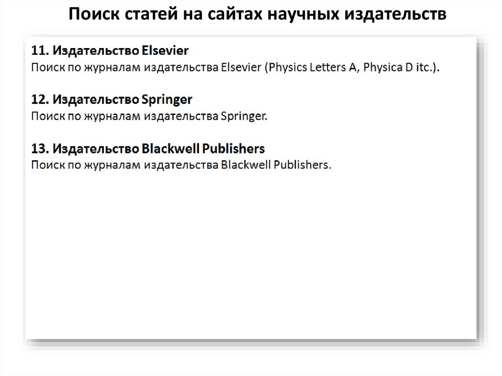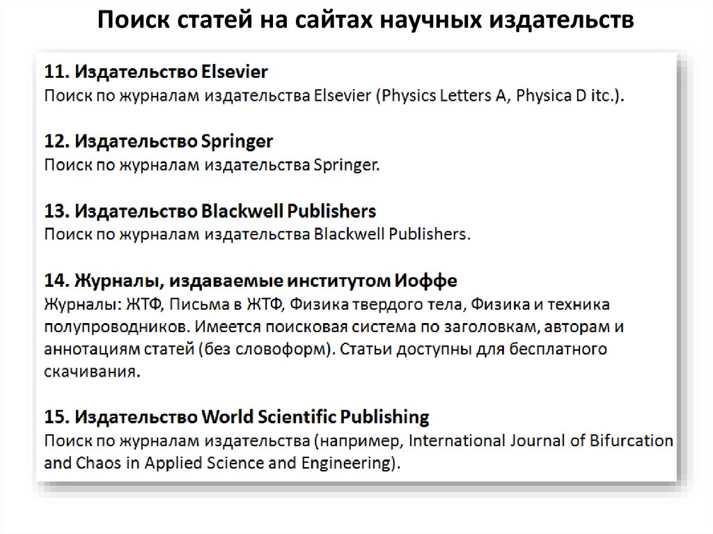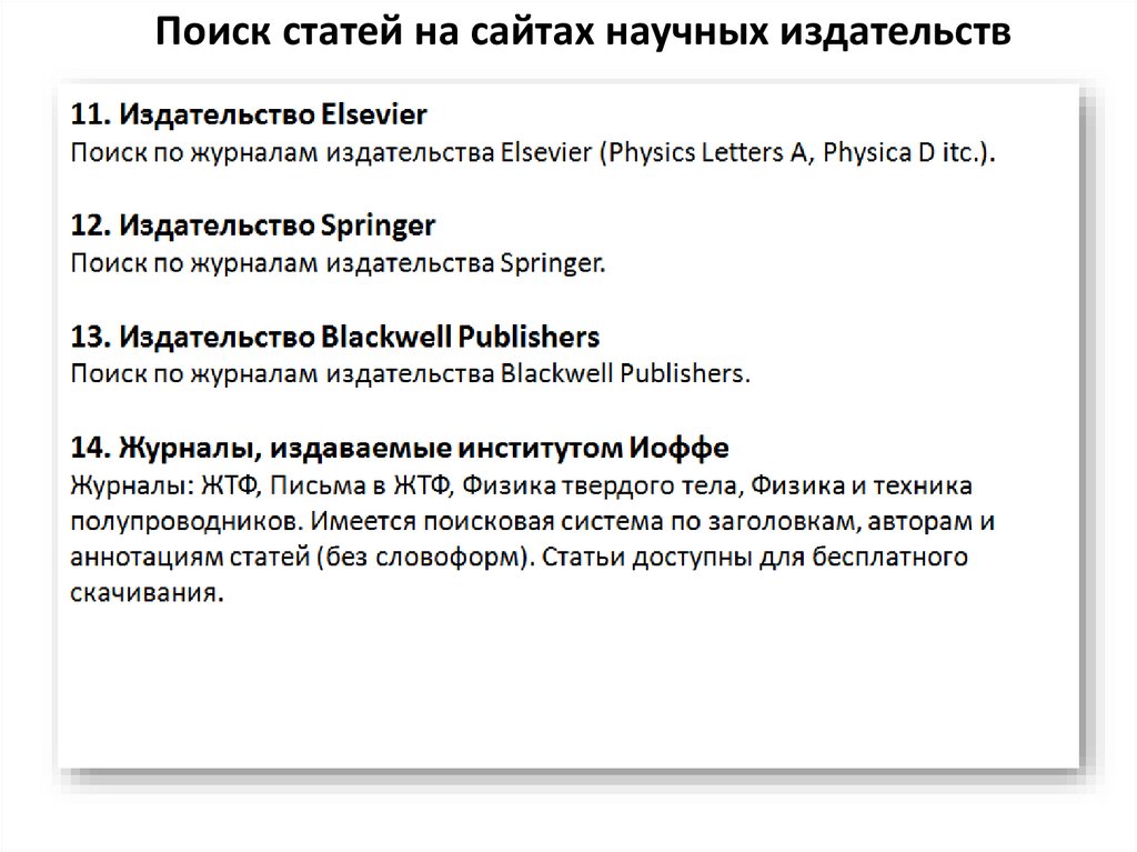 издательств, архивы препринтов, публикации на сайтах университетов, научных