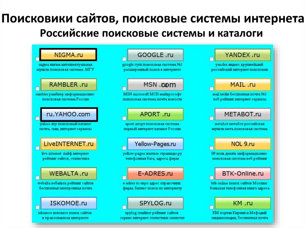 Поисковики сайтов, поисковые системы интернетаРоссийские поисковые системы и каталоги