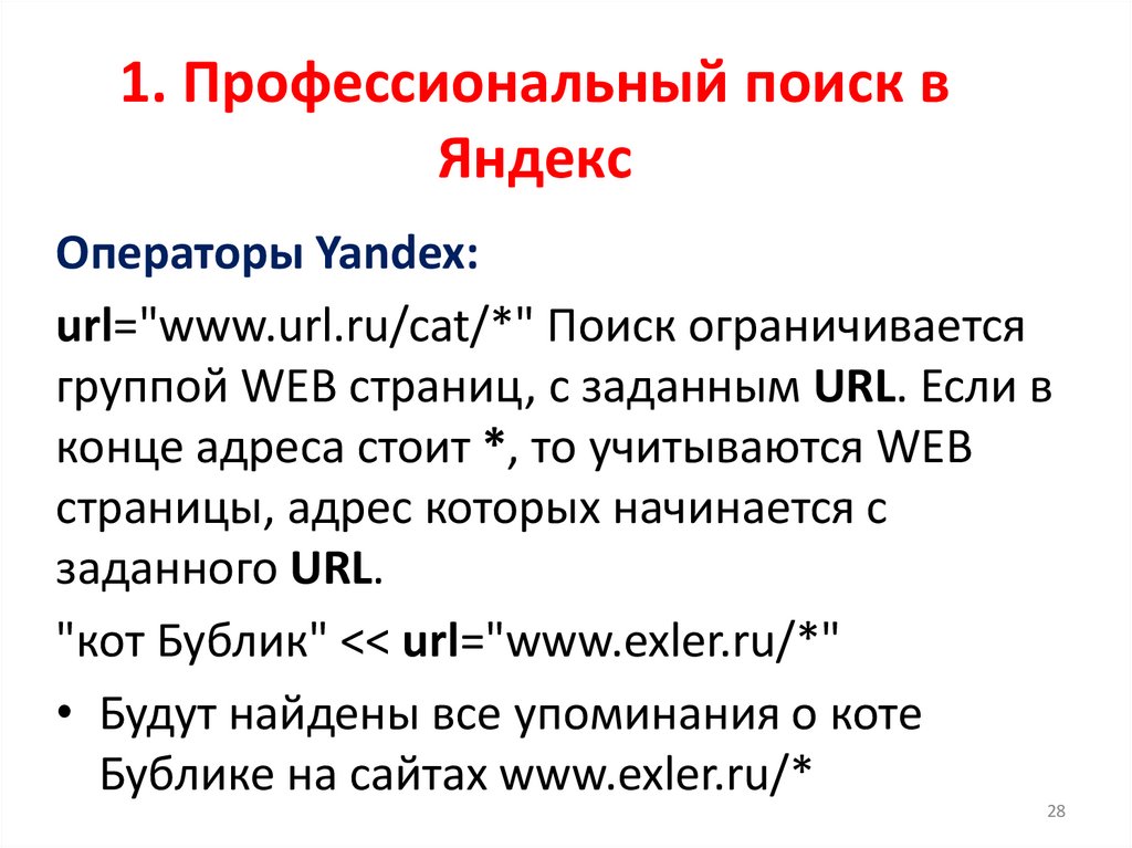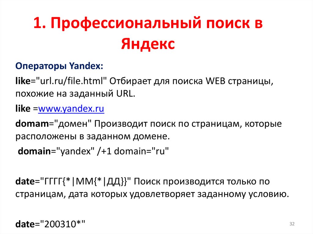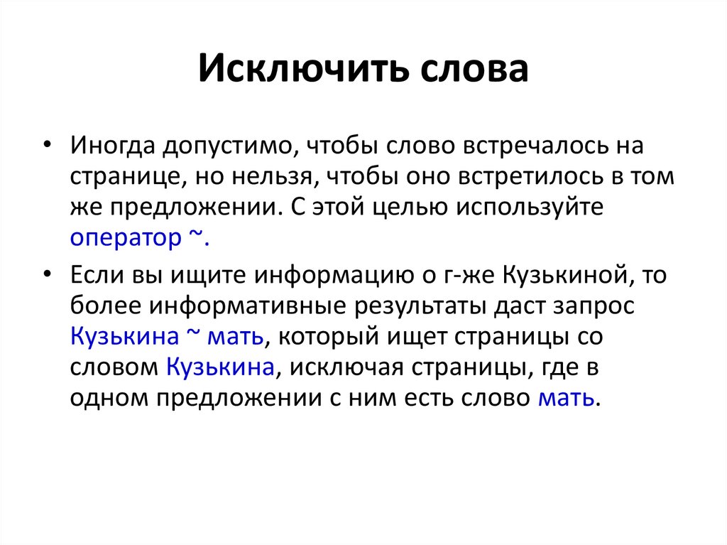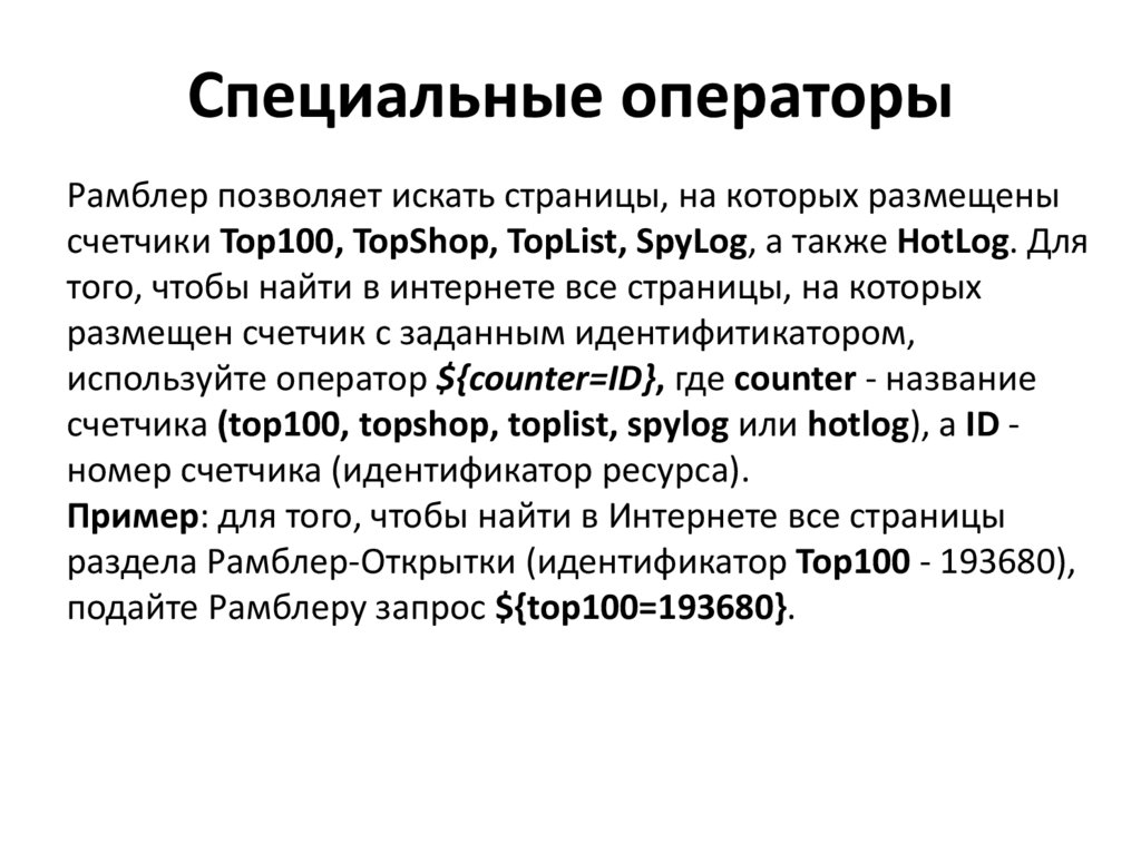 Специальные операторыРамблер позволяет искать страницы, на которых размещены