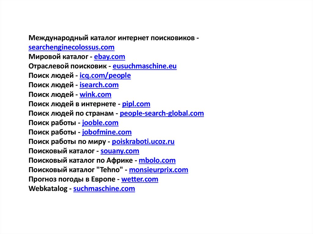 Международный каталог интернет поисковиков searchenginecolossus.comМировой каталог - ebay.com