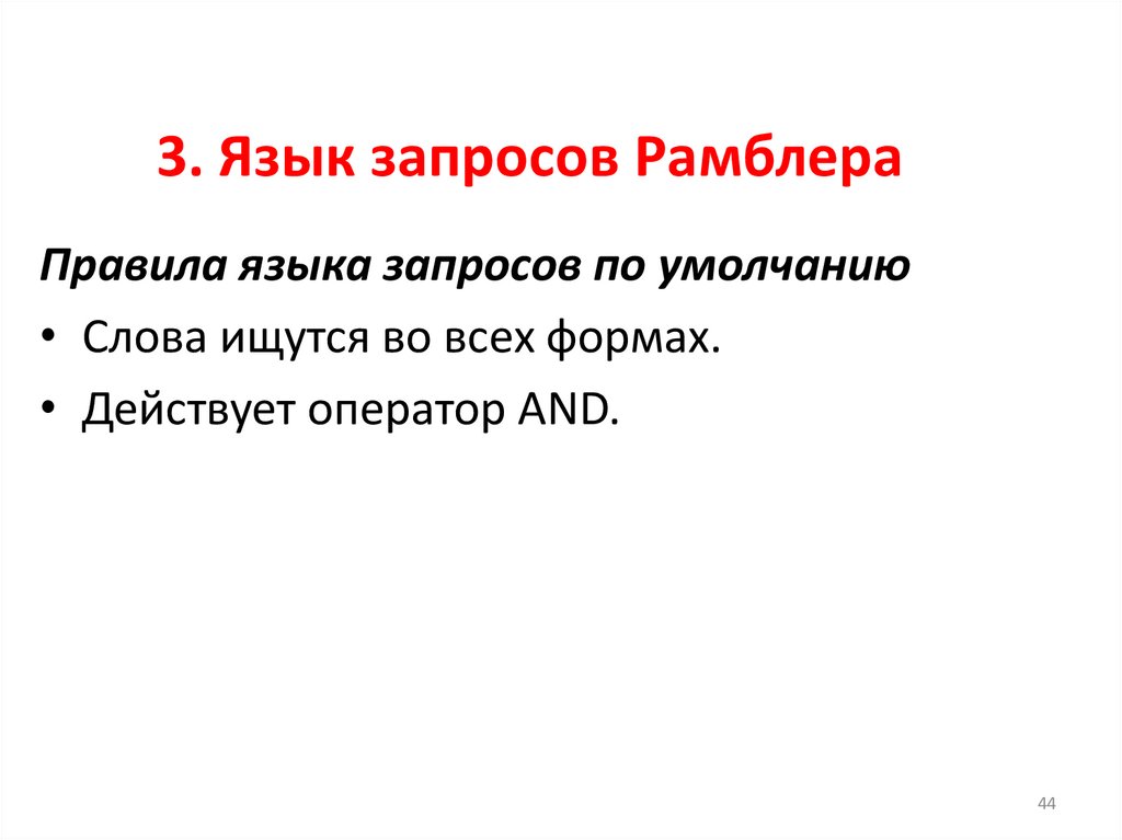 3. Язык запросов РамблераПравила языка запросов по умолчанию
