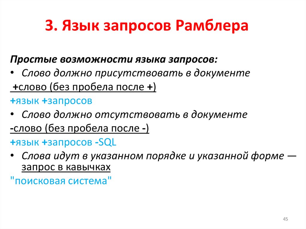 3. Язык запросов РамблераПростые возможности языка запросов: