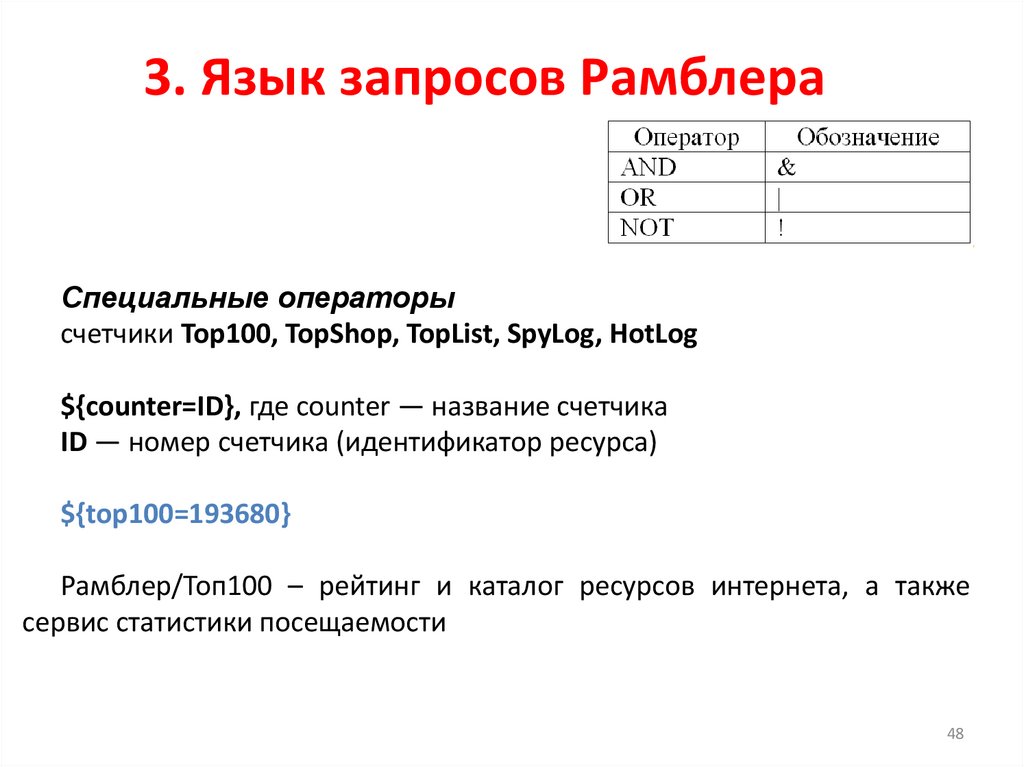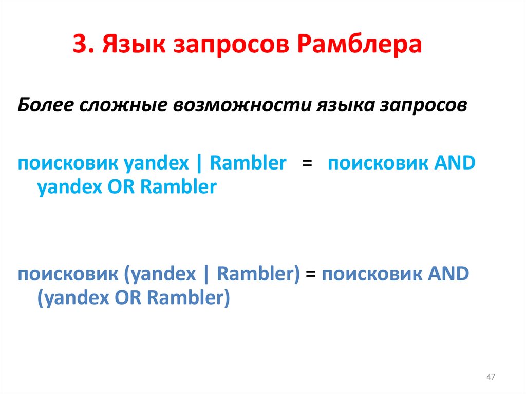 3. Язык запросов РамблераБолее сложные возможности языка запросов