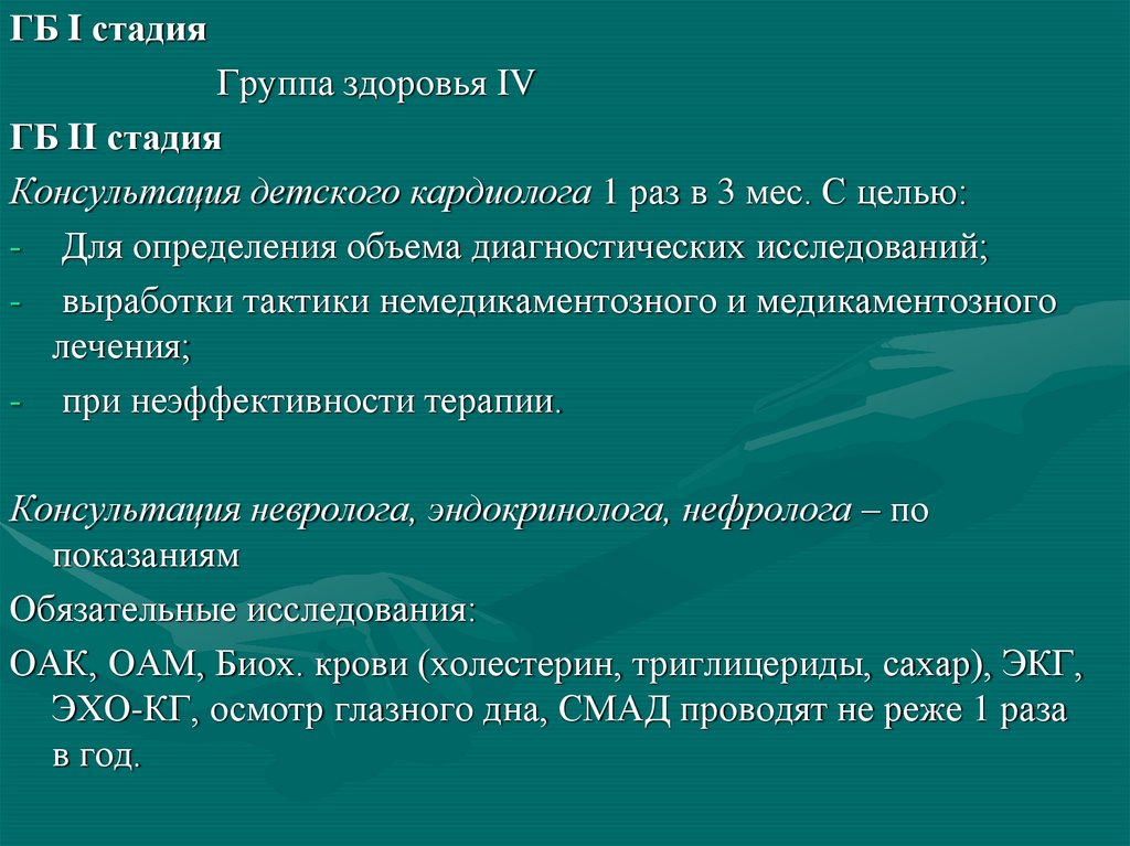 ЭХО-КГ, осмотр глазного дна, СМАД проводят не реже 1 раза