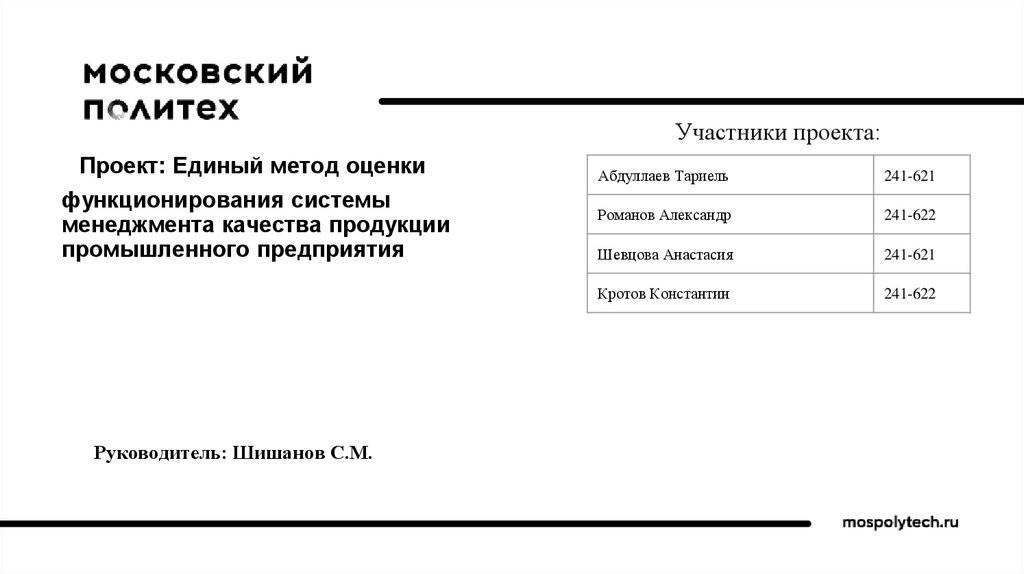 Руководитель: Шишанов С.М.