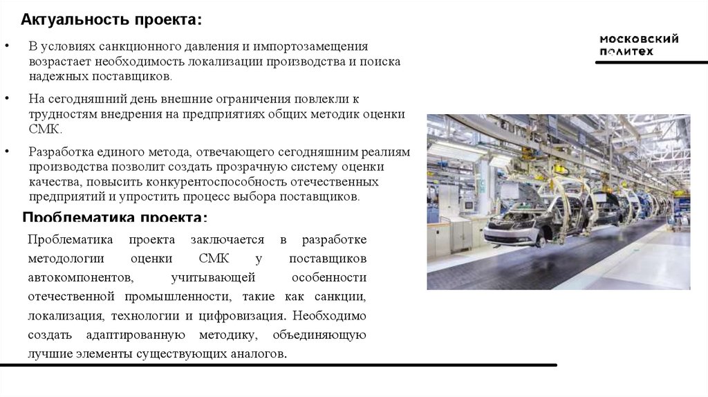 Актуальность проекта:В условиях санкционного давления и импортозамещения