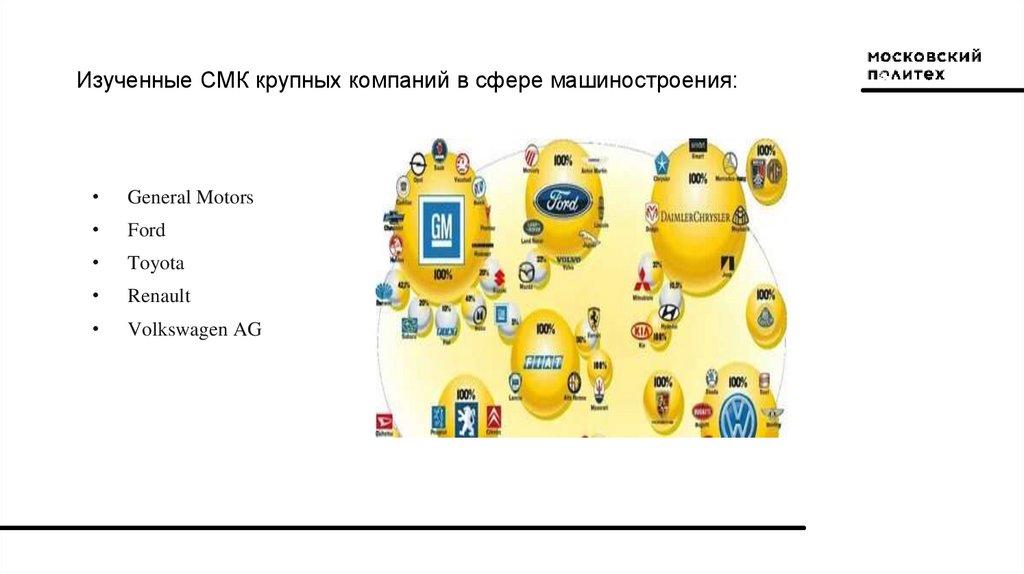 Изученные СМК крупных компаний в сфере машиностроения:General Motors