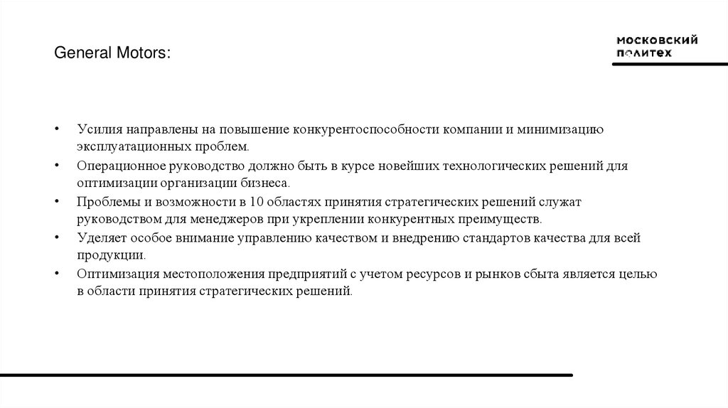 General Motors:Усилия направлены на повышение конкурентоспособности компании и минимизацию