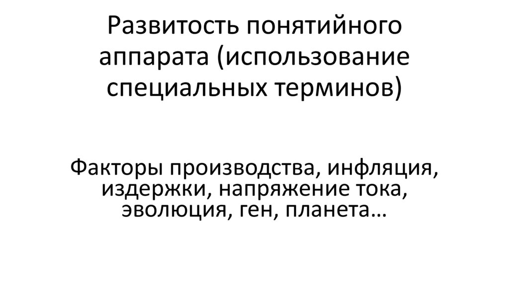 Развитость понятийногоаппарата (использование