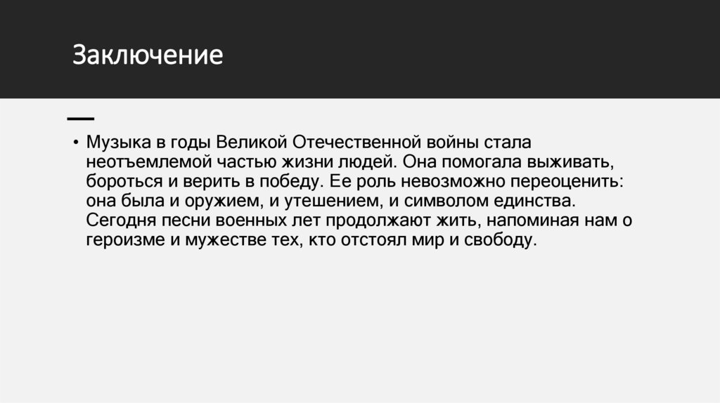 Заключение• Музыка в годы Великой Отечественной войны стала