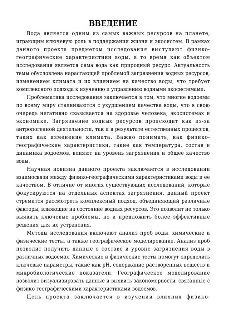 данного проекта предметом исследования выступают физикогеографические характеристики воды, в то время как объектом