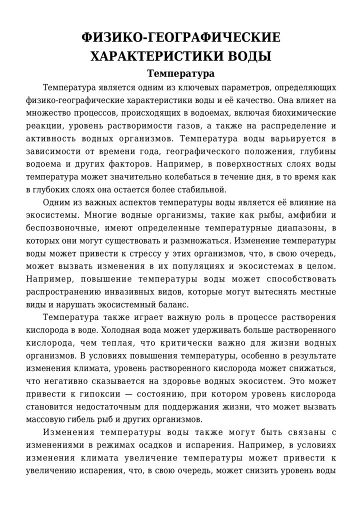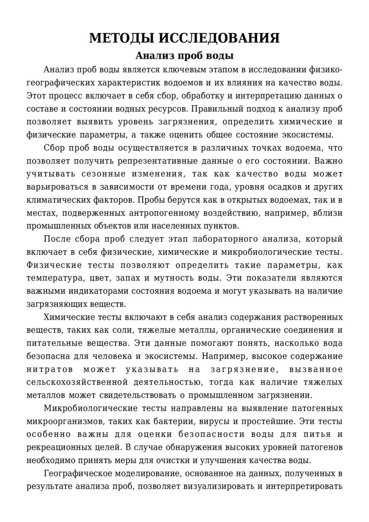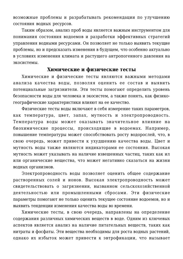 Анализ проб воды является ключевым этапом в исследовании физикогеографических характеристик водоемов и их влияния на качество воды.