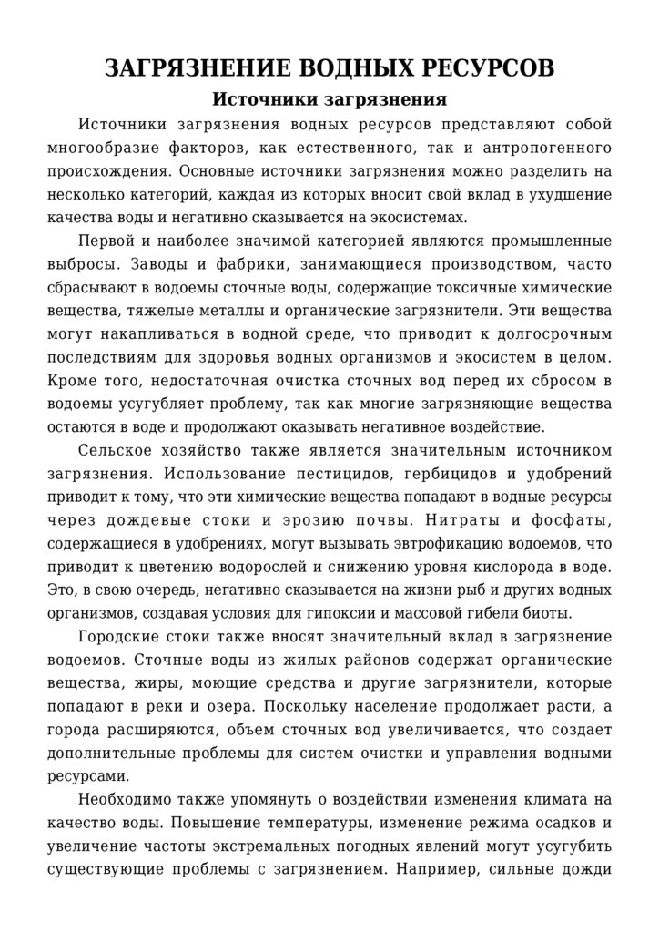 экономике. Загрязнение водных ресурсов происходит как из-за