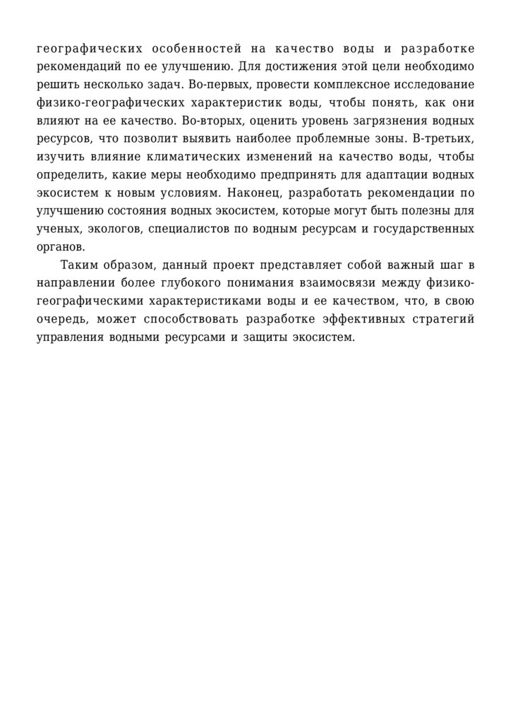 географических особенностей на качество воды и разработкерекомендаций по ее улучшению. Для достижения этой цели необходимо