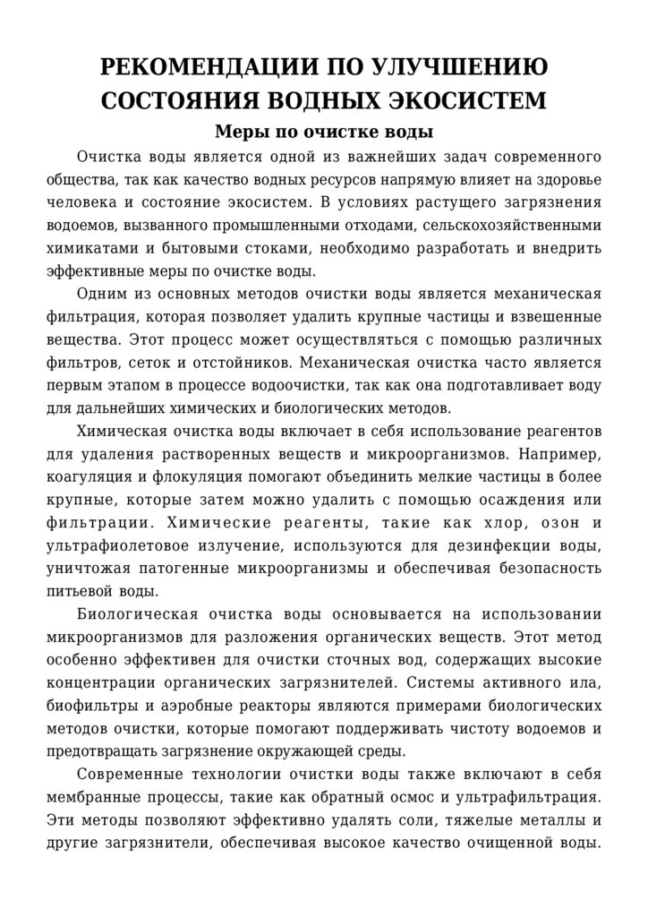 улучшению состояния водных экосистем, которые могут быть полезны для