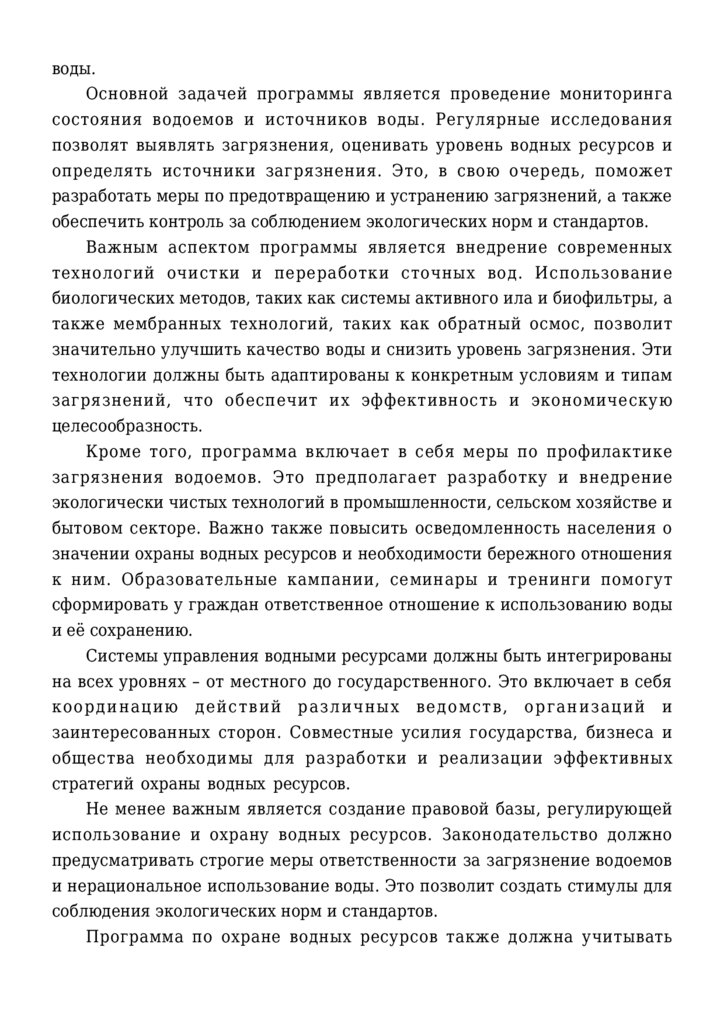водоемов и нерациональное использование воды. Это создаст стимулы для