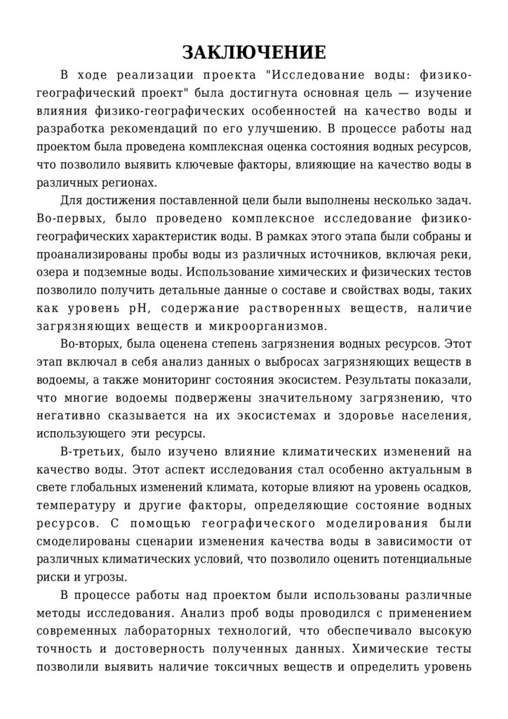 Научный проект на темуИССЛЕДОВАНИЕ ВОДЫ ФИЗИКОГЕОГРАФИЧЕСКИЙ ПРОЕКТ