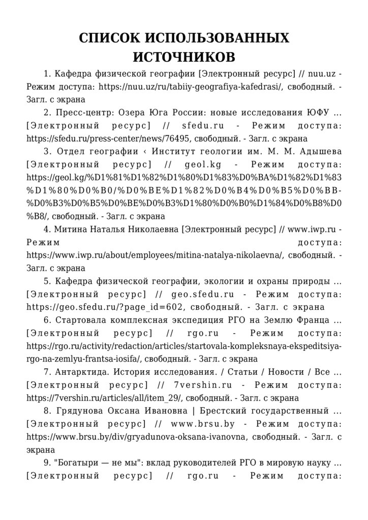 1. Кафедра физической географии [Электронный ресурс] // nuu.uz Режим доступа: https://nuu.uz/ru/tabiiy-geografiya-kafedrasi/, свободный. Загл. с экрана