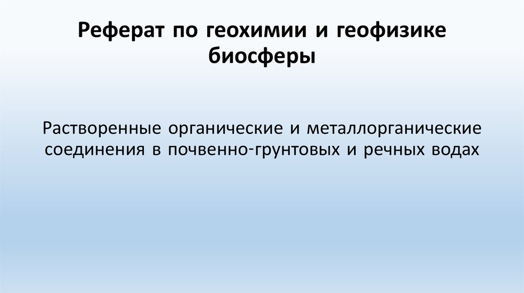 Растворенные органические и металлорганические соединения в почвенно-грунтовых и речных водах