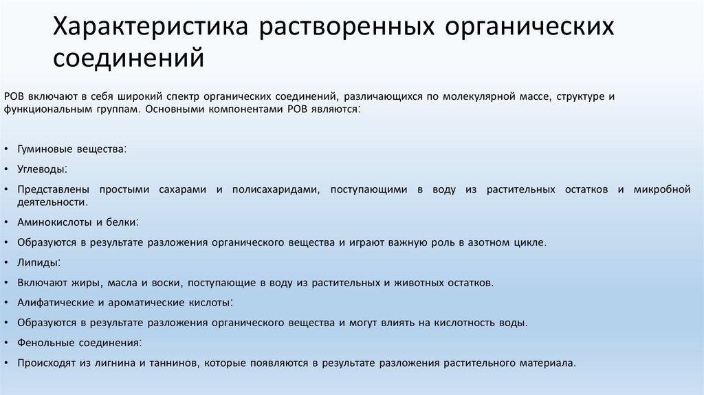 РОВ включают в себя широкий спектр органических соединений, различающихся по молекулярной массе, структуре и