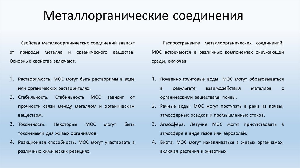 Металлорганические соединенияСвойства металлоорганических соединений зависят