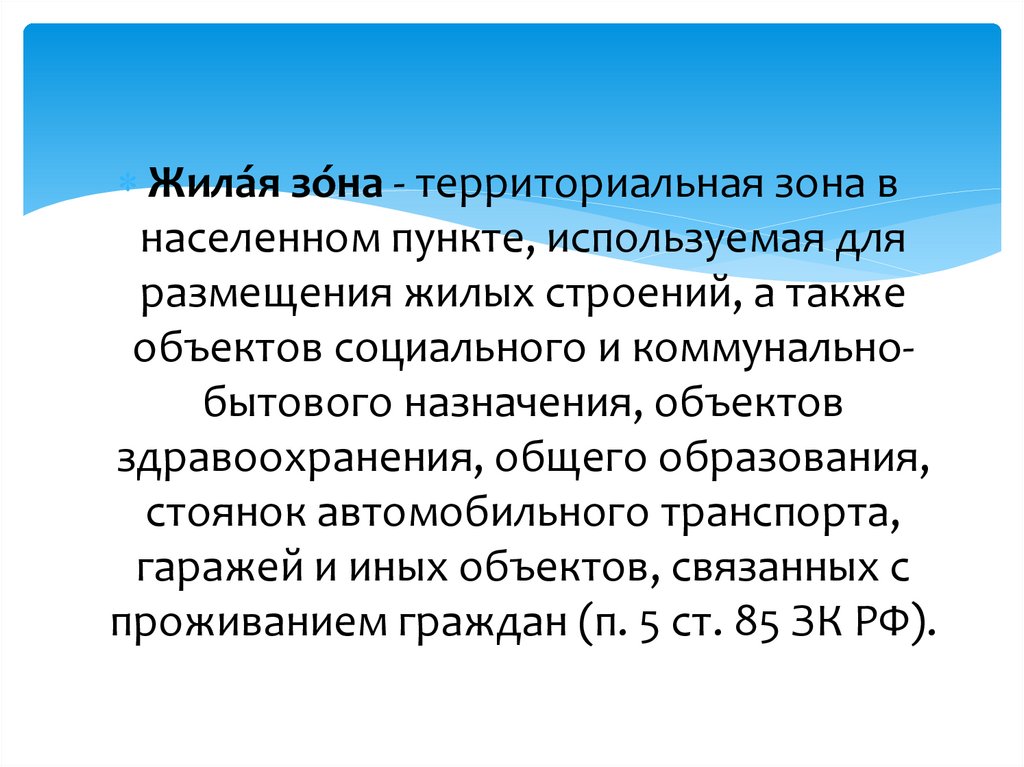 Жила́я зо́на - территориальная зона внаселенном пункте, используемая для
