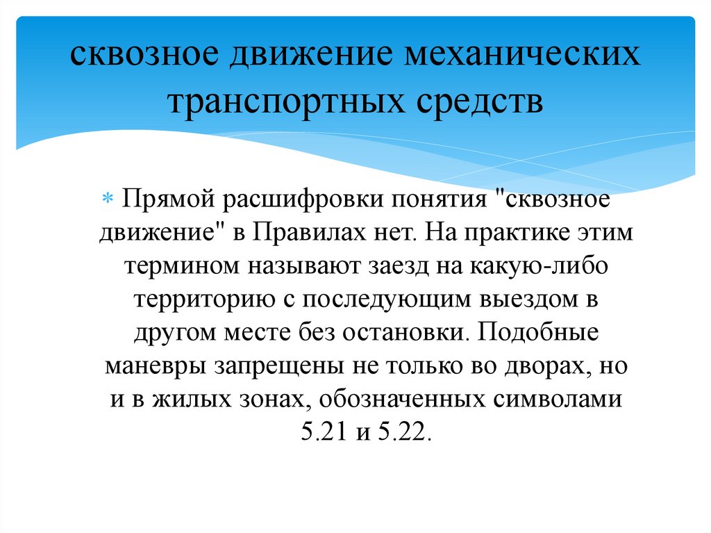 сквозное движение механическихтранспортных средств