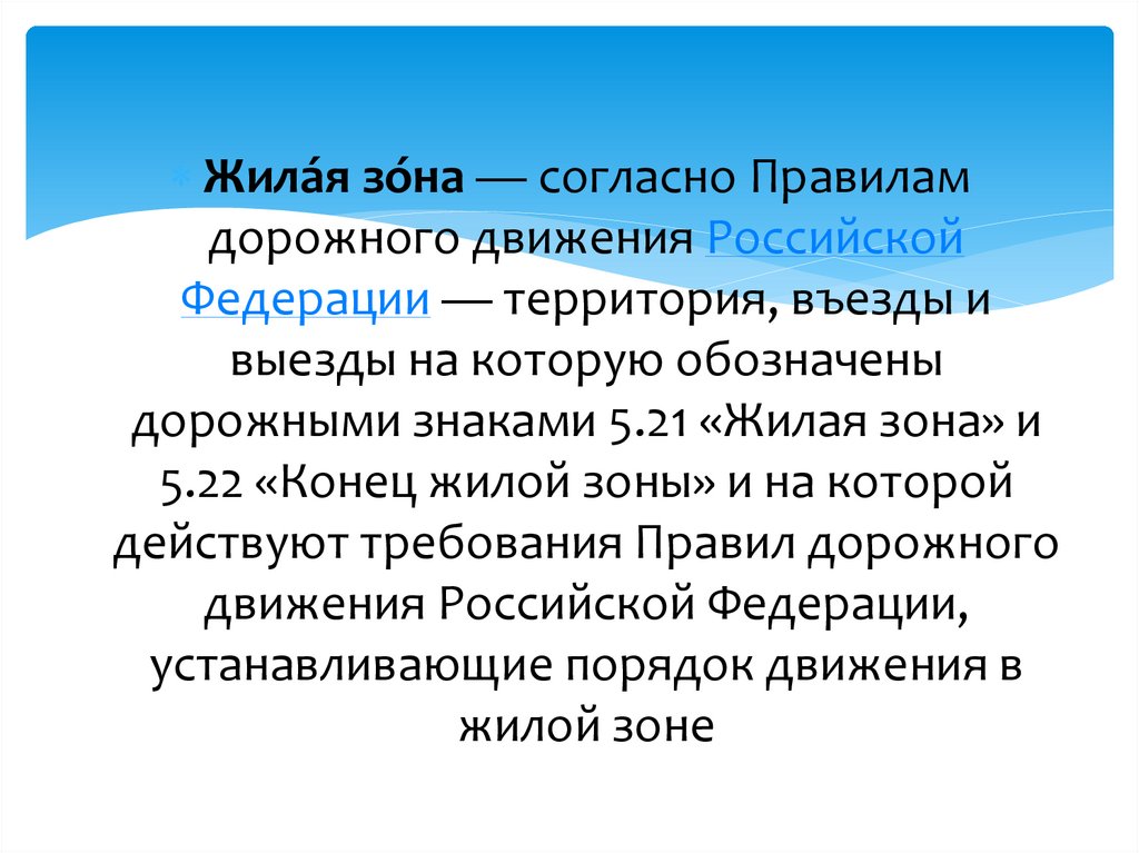 Жила́я зо́на — согласно Правиламдорожного движения Российской