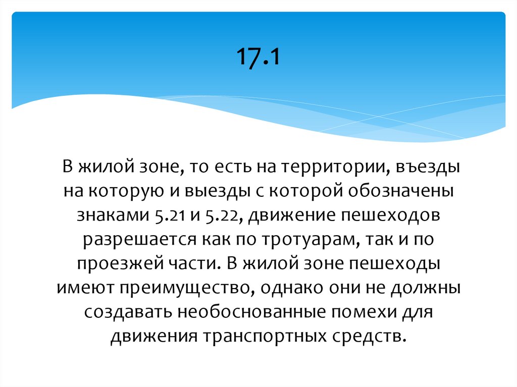 17.1В жилой зоне, то есть на территории, въезды