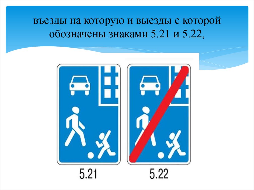 въезды на которую и выезды с которойобозначены знаками 5.21 и 5.22,