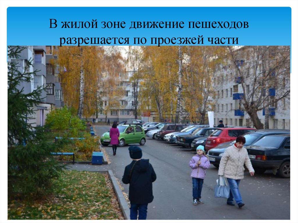 В жилой зоне движение пешеходовразрешается по проезжей части