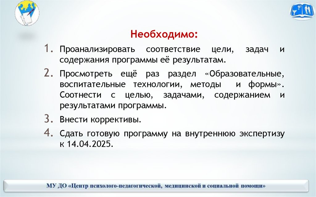 Соотнести с целью, задачами, содержанием и