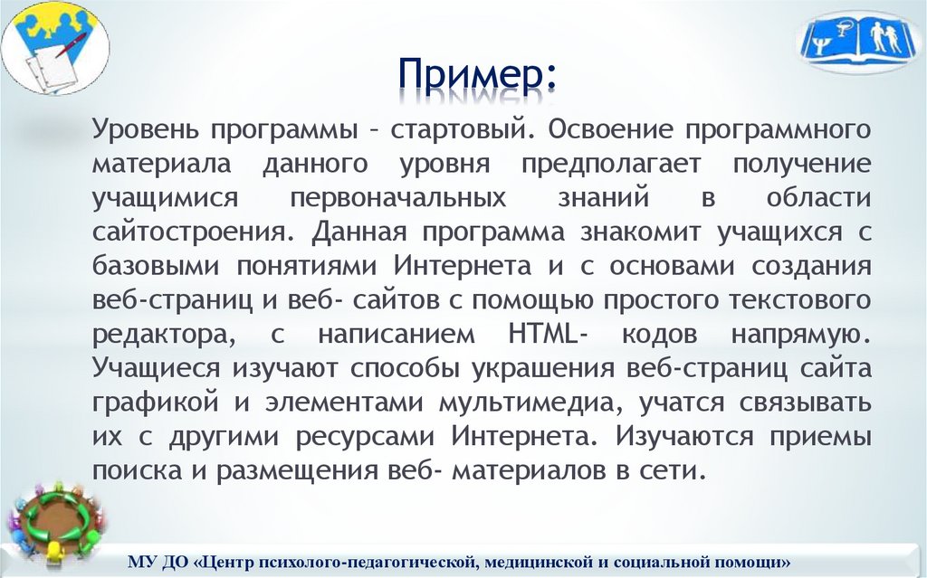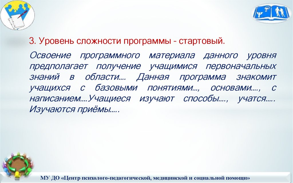 3. Уровень сложности программы – стартовый.Освоение программного материала данного уровня